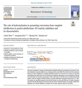 博士研究生赵浚凯同学在影响因子为7.539的Bioresource Technology(中科院1区,top期刊)上发表了题为《羟胺促进全程硝化向短程硝化转化的机理:NO毒性抑制及其特性》(The role of hydroxylaminein promotingconversionfrom complete nitrification to partial nitrification: NO toxicity inhibition and its characteristics)的研究论文,2019级博士研究生赵浚凯为第一作者,导师赵剑强教授为通讯作者,91club