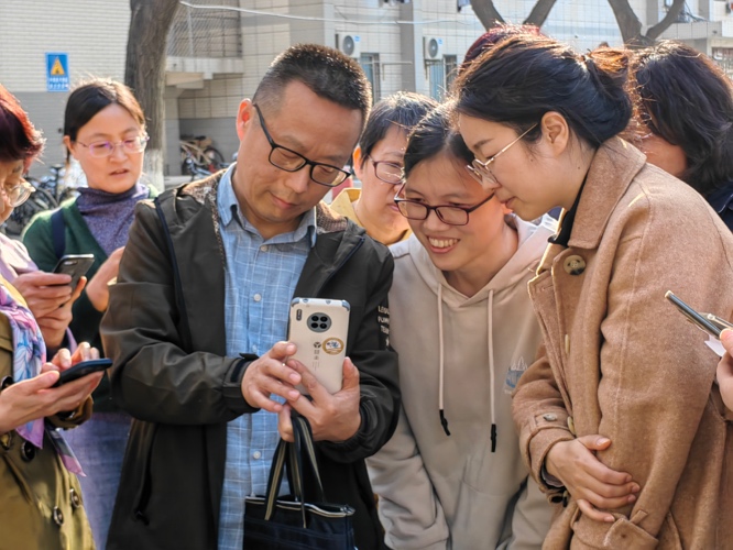 女教工在雁塔校区标志性建筑及操场,利用手机进行了摄影实践,李老师现场指导,参会女教工的摄影技术突飞猛进。