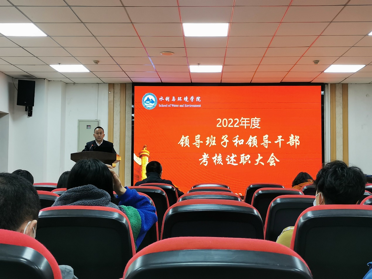 组织召开2022年度学院领导班子和领导干部考核述职大会,学校考核指导组成员刘欣到会指导。学院全体教师参加会议,会议由院党委书记邓红章主持。