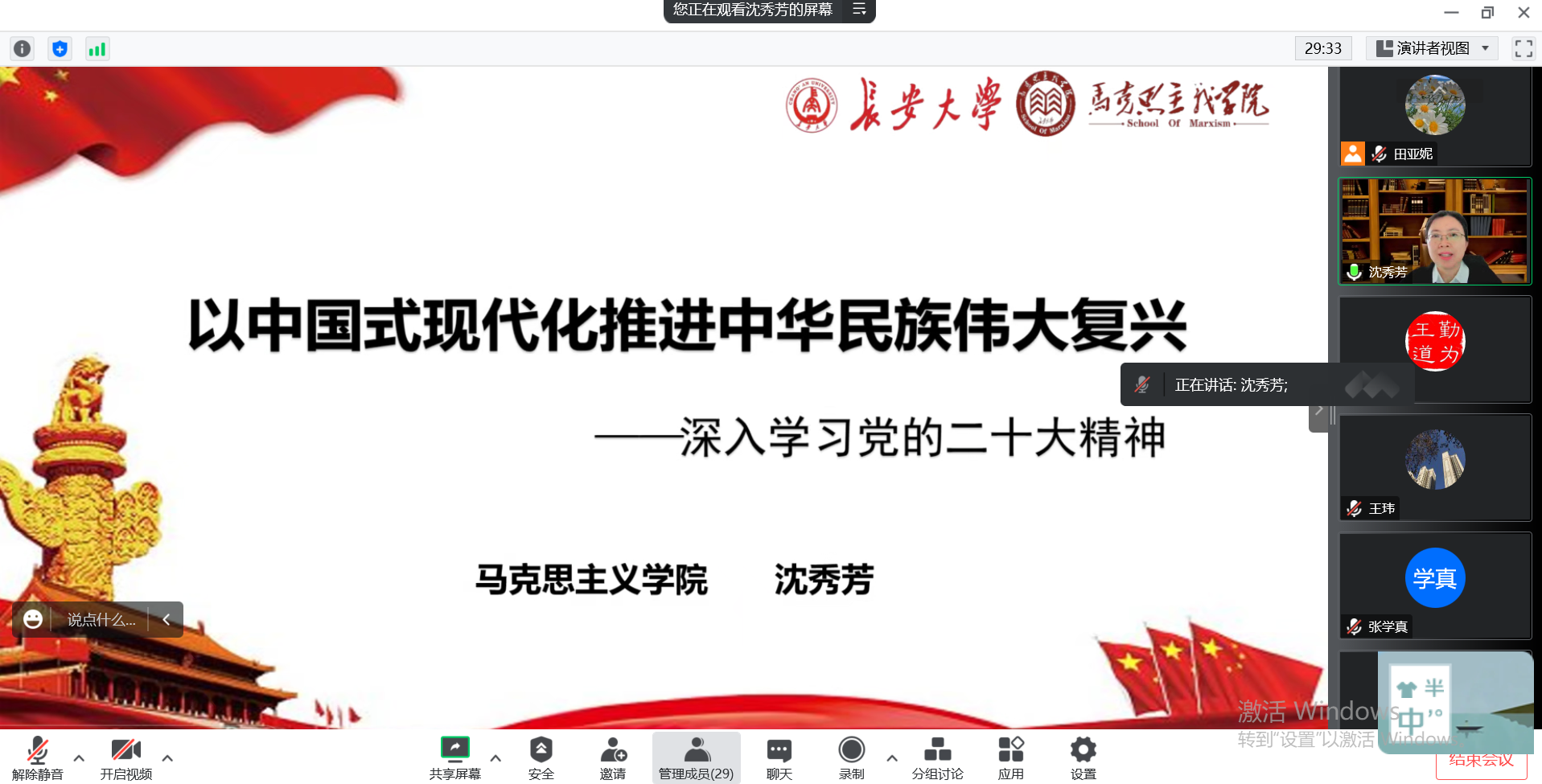 会上,学院特邀学校学习宣传贯彻党的二十大精神宣讲团成员、马克思主义学院副教授沈秀芳,以《以中国式现代化全面推进中华民族伟大复兴——深入学习党的二十大精神》为题,从理论逻辑、历史逻辑和实践逻辑三个层面深刻阐释了中国式现代化的科学内涵和九大本质要求。结合宣讲内容,民建委员会91club
