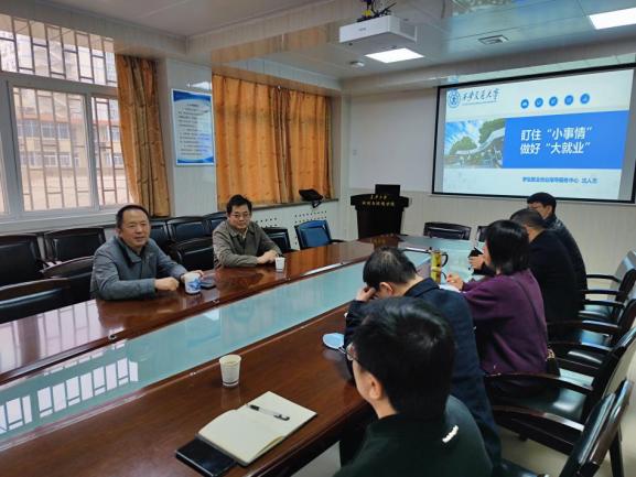就“如何解决新疆、西藏籍少数民族的就业”“如何给考研二战的学生做工作”等问题向沈老师请教和交流。沈人杰指出,新疆、西藏籍少数民族是非常重感情的,平时在节假日需关心关爱民族同学,要经常走访招收少数民族的单位,培养良好的信任关系是最终解决就业的关键;对二战的同学要分析近几年的考研形势,用数据讲事实,针对他们的情况主动梳理条件符合的单位并精准推荐,做到“一人一策”。
