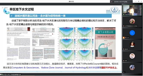 王文科教授以旱区地下水文过程及生态效应内容为主题,系统阐述了科研方法论。首先提出了旱区地下水文与生态效应的研究背景,介绍了不同类型科研问题的研究方法,诸如野外尺度动态观测、全天候立体式监测网络、实验室尺度数值模拟等,通过机理研究与耦合建模,来回答旱区地下水过程的量化问题,发展旱区地下水文学科。接着,他详细介绍了旱区地下水的形成演化、河流与地下水的转化模式、地下水生态效应等内容,让学生深入了解了地下水与生态环境的关系。最后通过对山水林田湖草生命共同体的思考来引导学生从多个角度出发、有联系性的进行科研,在宏观主题下把握每一个细节。