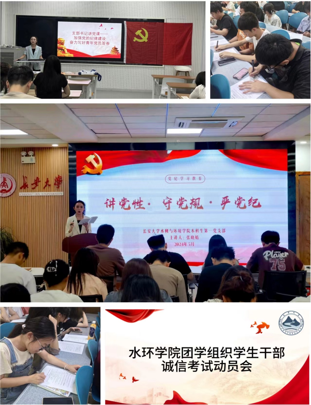 学生违纪处分规定》等文件,营造良好风气帮助学生将校规校训、学生守则、考勤制度、考试规定等内化于心、外化于行。在考试来临前,通过现场签订考试诚信承诺书使得学生牢固树立责任意识、契约意识,引导水环学子认真诚信考试。