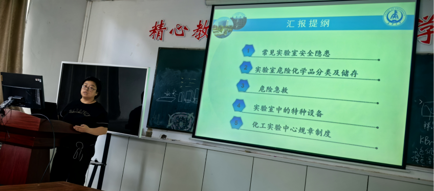 2024年9月6日下午,化工实验中心在南校区东院教学区第五教学楼103 会议室面向2024级研究生开展了实验室安全教育培训,化工实验中心主任陈志红、化工支部书记吕向菲、化工系副主任邢建宇和2024级研究生参加了本次培训,培训由邢建宇主持。