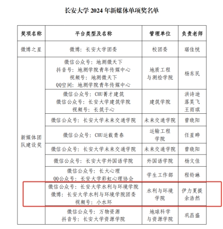 微信公众号、视频号、微博平台等荣获“新媒体团队建设奖”。