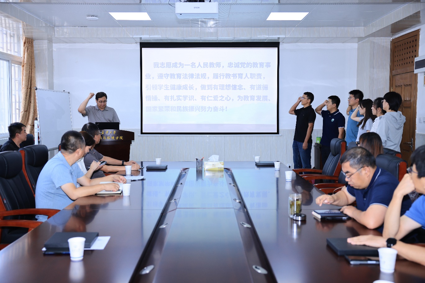 分会积极响应国家政策,在教师节举办了“树师德 铸师魂”2024年新教工入职仪式。学院院长白波,党委副书记兼副院长荆琳,副院长李培月、段磊、张洪波,工会主席陈志红出席活动,入职仪式由荆琳主持。