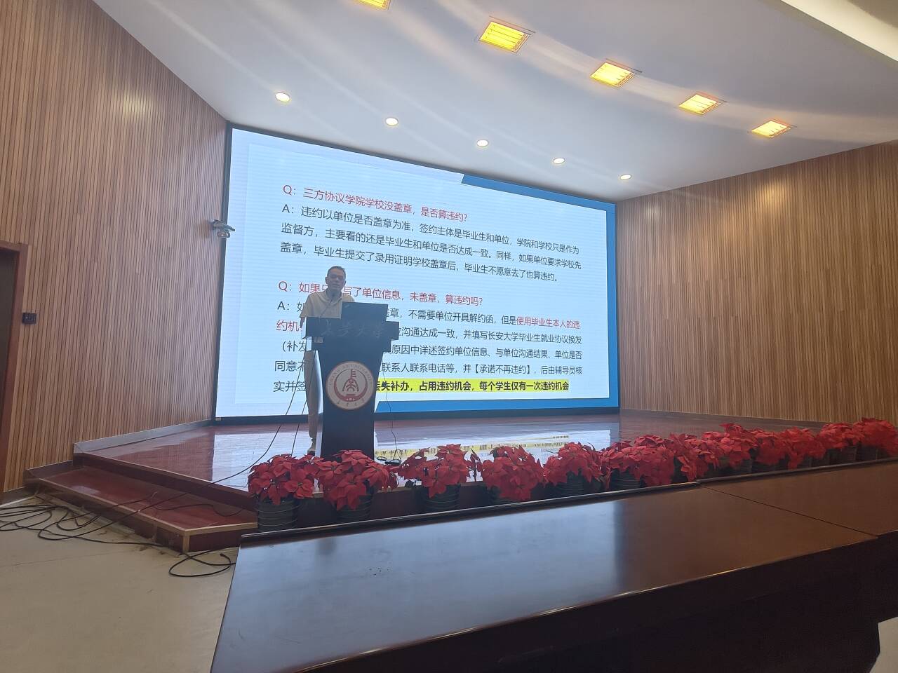 本次就业指导会旨在为毕业生们指明就业方向,教育引导同学们进一步明确自身职业定位。未来,学院将落实就业“一把手工程”“全员工程”,整合资源,搭建平台,精准施策,为每一位毕业生的顺利就业和高质量就业提供坚实有力的支持和保障。
